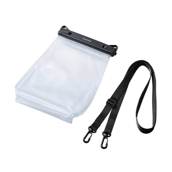 対応:スマートフォン種類:ブラック説明:JIS保護等級IPX8相当の防水性能を実現する、水深約10mで30分までの防水テストをクリアした大容量タイプのスマートフォン用防水ケースです。屋外で水や汚れを気にせず使用でき、装着したまま写真や動画撮影も可能!マチ付きのため、スマートフォン以外の貴重品も収納できる大容量設計です。■対応機種:約6.9インチ以下のスマートフォン ■セット内容:スマートフォン用防水ケース×1、ショルダーストラップ×1 ■材質:ケース:PVC・ABS、ショルダーストラップ:ポリエステル ■カラー:ブラック ■その他:参考収納寸法:幅約110mm×奥行約30mm×高さ約180mmメーカー:エレコム型番:P-WPSG05BKお取り寄せ商品について:メーカーの欠品または生産終了時は、当店よりご注文をキャンセルさせて頂く場合がございます。予めご了承ください。