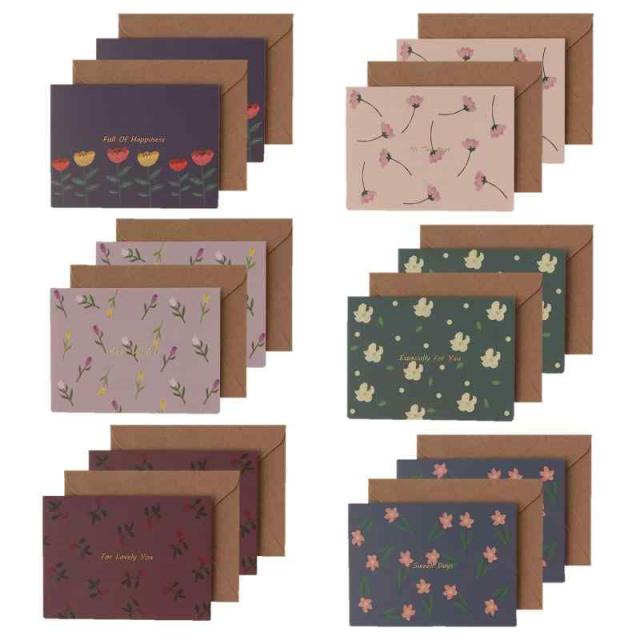 XPデザイン フラワー デザイン メッセージカード シンプル クラフト グリーティングカード ミニカード 名刺サイズ 封筒付き (フラワーデザイン6種12個セット)