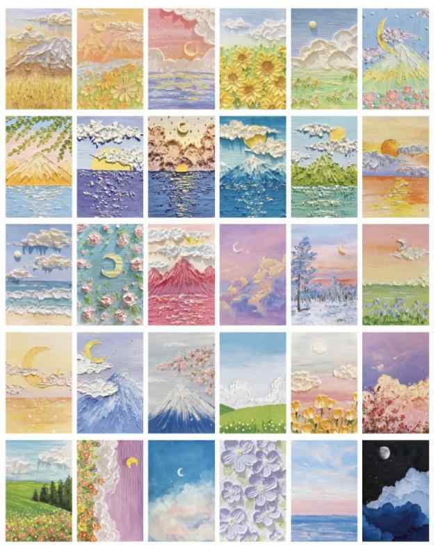 [ドナリー]おしゃれで可愛い ポストカード 30枚セット はがきサイズ 北欧 韓国 海外 インテリア 雑貨 ミニポスター (空と海と山のアート)