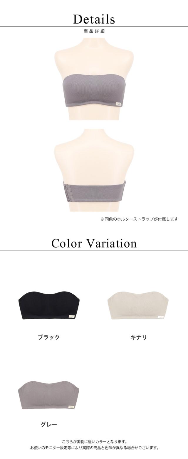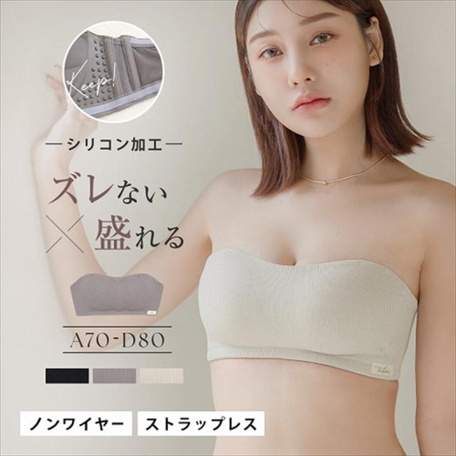 ストラップレスでも盛れる!ズレにくいノンワイヤーブラ♪リブ素材とサイドホックで背中見せコーデにぴったり ※同色のストラップが付属します