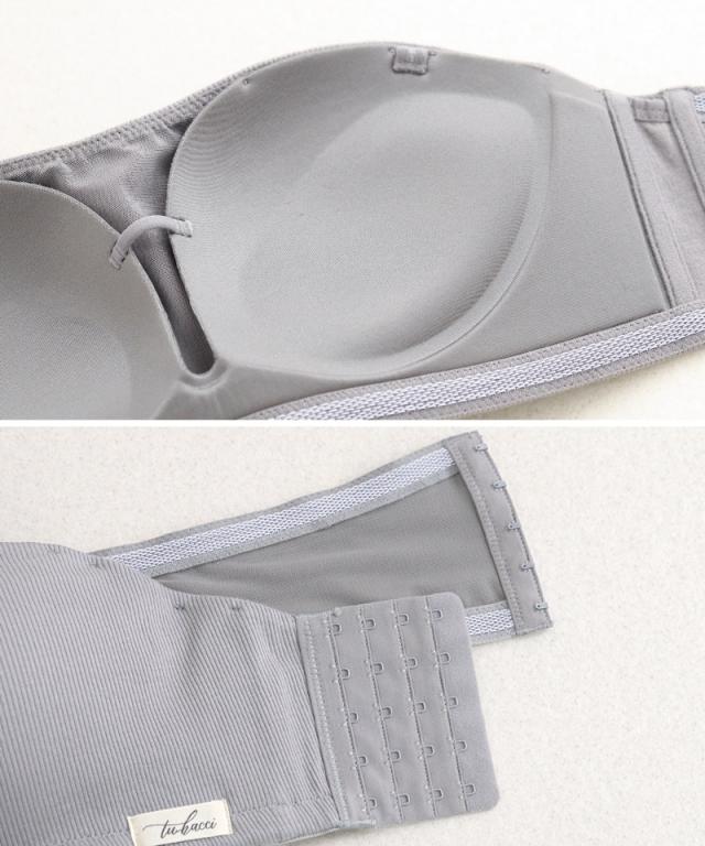 tu-hacci Bra Collection ブラ単品 リブ素材のストラップレスブラはモードな雰囲気を醸しだす。 無駄のない洗練されたデザインがボディラインに深みを与えてくれる。 サイドホックで、背中見せファッションにもオススメ◎ ■「ズレない × 盛れる × ノンワイヤー」 盛れ感はそのままに、付け心地を追求しリニューアルした厚手の盛りパッドを搭載。 下と横からしっかりバスト持ち上げ谷間メイク。 上下に滑り止めのシリコンゴムを採用で ストラップレスでもズレずにしっかりホールドを実現。 こんなの欲しかった!をカタチに。 下着専門店が本気で作ったストラップレスブラ ☆こんなお悩みのある方におすすめです ・オフショルダーやドレスの時の下着に困っている ・ストラップレスはとにかくズレるから嫌 ・盛れるストラップレスブラを探している ・ワイヤーの窮屈感や痛いのが苦手 ・バストにボリュームが欲しい ※こちらの商品は2025年2月にリニューアルいたしました。これ以前のレビューはリニューアル前の商品に対するものとなりますので、ご参考の際はご注意ください。 ※常に商品改良をおこなっており、ご購入いただくタイミングにより仕様や着用感・色味が若干異なる場合がございます。 |