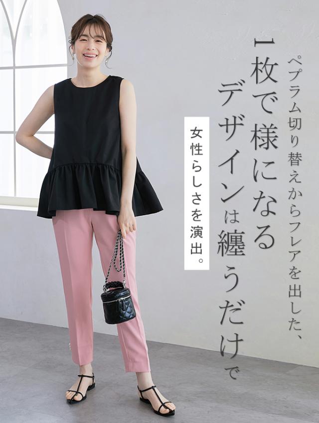 切替え下からふんわり広がる、着映えペプラムブラウス カーディガンを羽織りやすいノースリーブタイプ。 ペプラムは前後で差をつけており、 バックスタイルはヒップをしっかりカバーする安心な丈感◎ ノースリーブなので、そのまま着るだけでなくレイヤードスタイルにも最適。 抜け感がでて細身でもワイドでも合わせやすいシルエット。 ※モニター環境により多少色合いが異なりますので、予めご了承くださいませ |