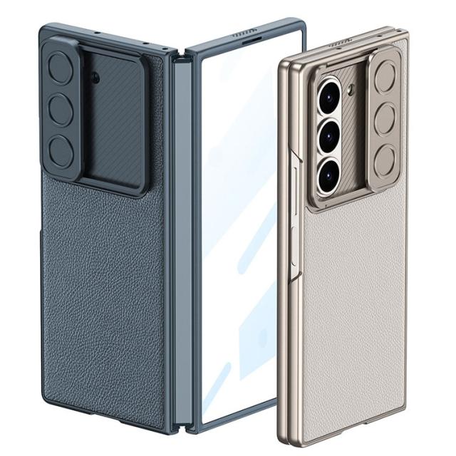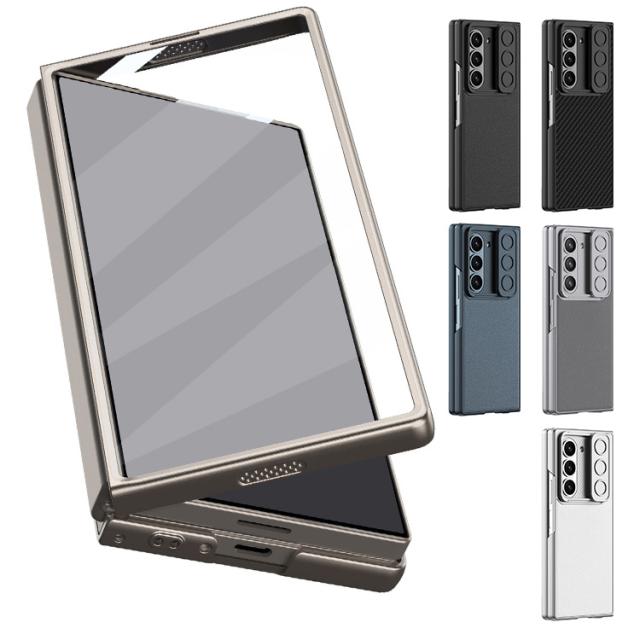 Galaxy Z Fold6 ケース 耐衝撃 カバー 強化ガラス+PUレザー+プラスチック カーボン調 スタンド機能 前面強化ガラス スライド式カメラレンズカバー付き レンズ保護 シンプル Samsung サムスン ギャラクシー Z フォールド6 保護ケース カバー アンドロイド おすすめ おしゃれ