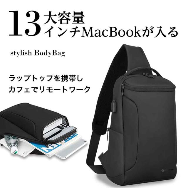 ボディバッグ 3ポケットワイド メンズ レディース スリングバッグ ショルダーバッグ ウェストバッグ 大容量 スタイリッシュ 防水 プレゼント ボディーバッグ YKK