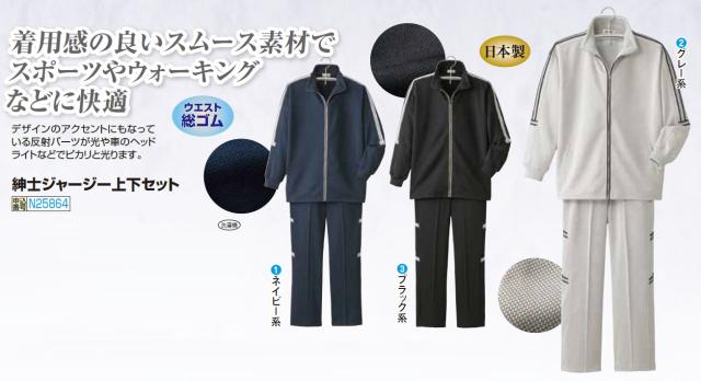 紳士ジャージー上下セット 全3色 ジャージ 上下セット 長袖 長ズボン メンズ 紳士服 シニア 男性 ネイビー ブラック グレー ジャージー セットアップ 紺色 黒 灰色 反射板 リフレクター 無地 シンプル ファッション 50代 60代 70代 80代 父の日 お父さん 春夏 natu p25864
