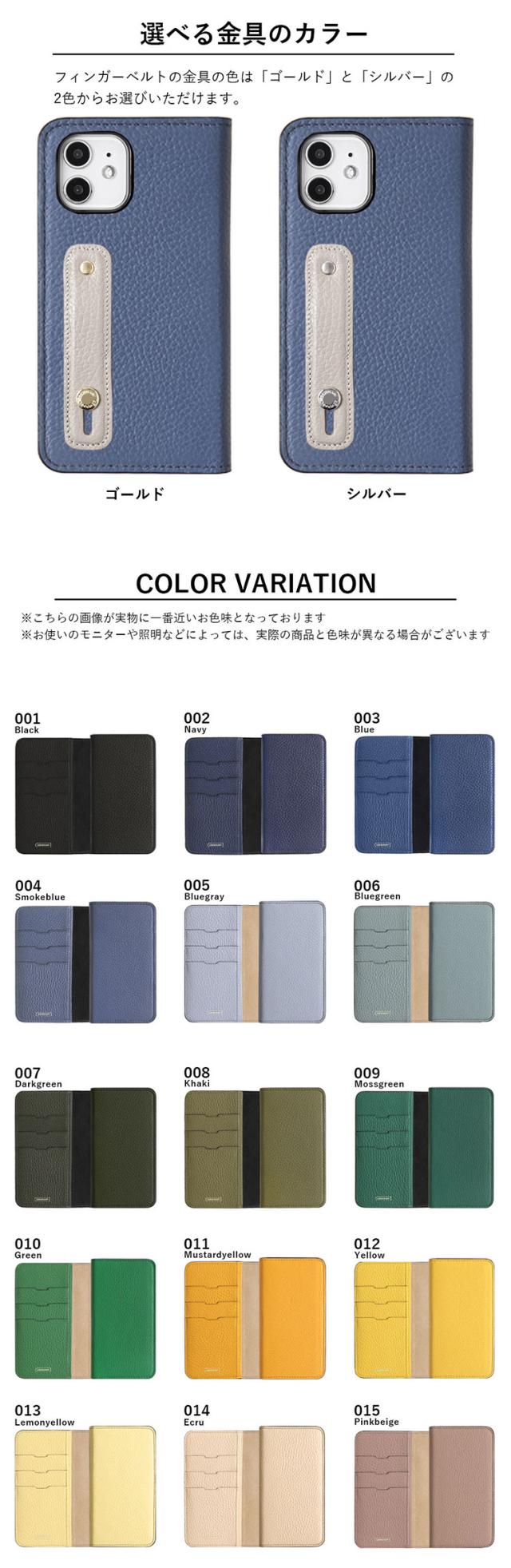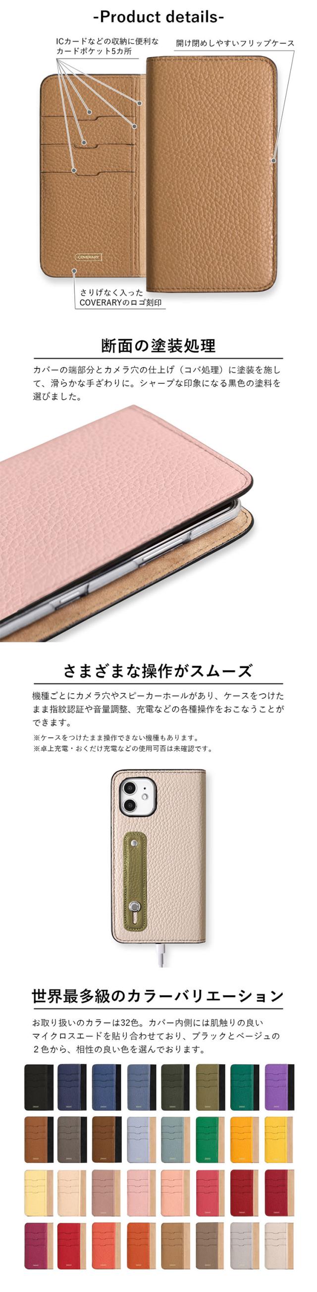 本革 手帳型スマホケース 32色 フィンガーベルト付き