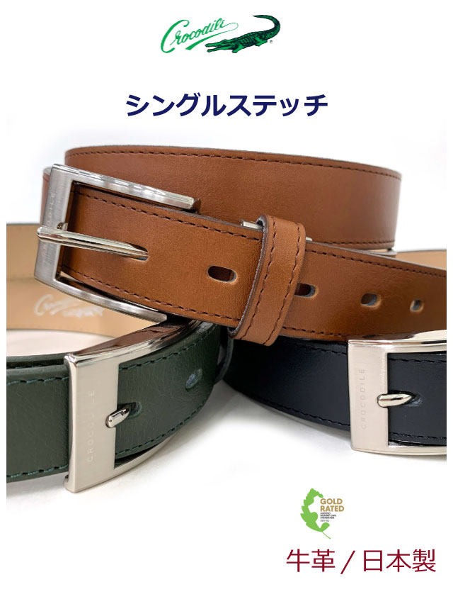 【ラッピング袋無料】ベルト メンズ 革 Crocodile クロコダイル シングルステッチ ベルト 日本製 5cm081 牛革 5穴 メンズ ブランド 男性 会社 丈夫 通勤 会社 スーツ カット可能 切れる ビジネス 通学 中学 高校 おしゃれ 制服 フォーマル 父の日 プレゼント メンズベルト