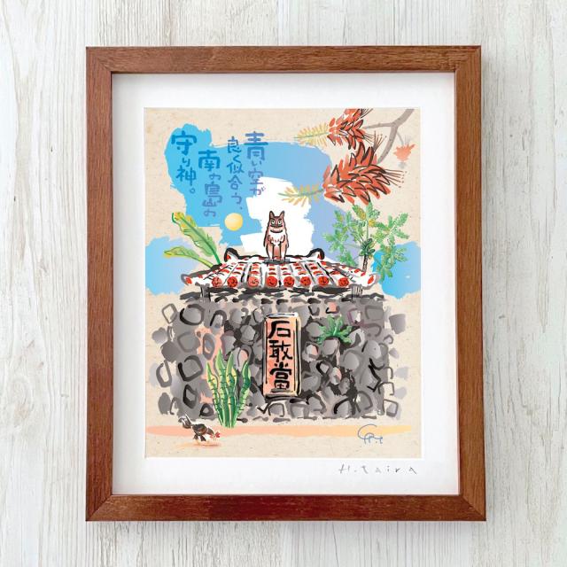 グラフィックアート 壁掛け おしゃれ 絵画 額付き 新築祝い 誕生日 プレゼント 島の彩 No.013 / 石敢當 Sサイズ