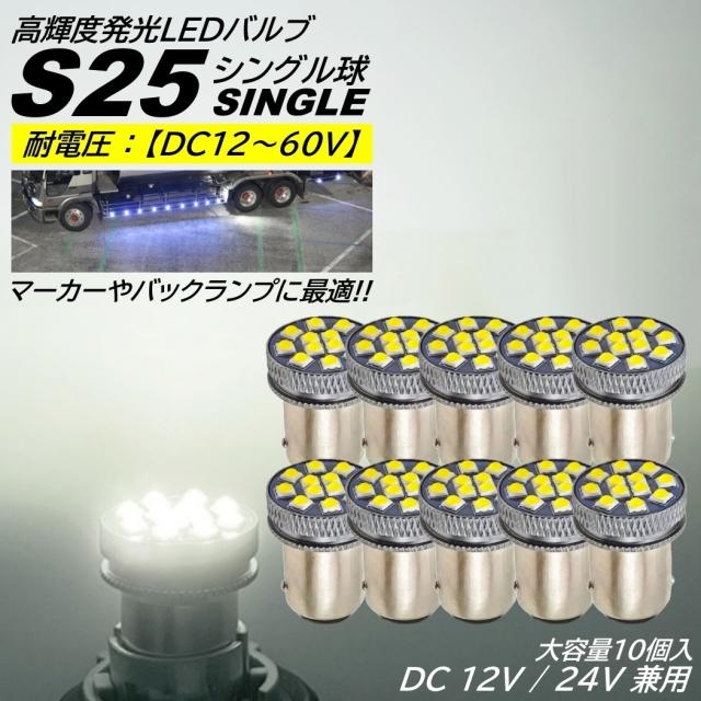 S25 LED シングル DC 24V 12V ホワイト 無極性 バックランプ サイドマーカー マーカーランプ マーカー球 トラック 1156 BA15S 10個入