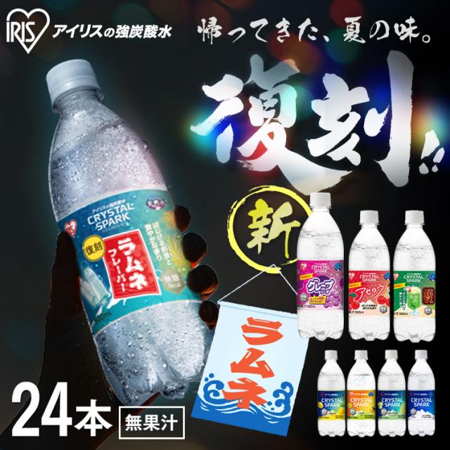 【復刻ラムネ・グレープソーダ登場!】 炭酸水 500ml 24本 強炭酸水 アイリスオーヤマ クリスタルスパーク ラムネ グレープソーダ レモン フレーバー プレーン はじける刺激 爽やかな香り 天然水 無糖 カロリーゼロ ペットボトル 炭酸飲料 アイリスフーズ *