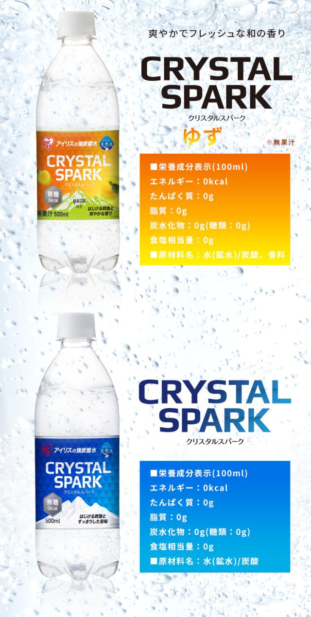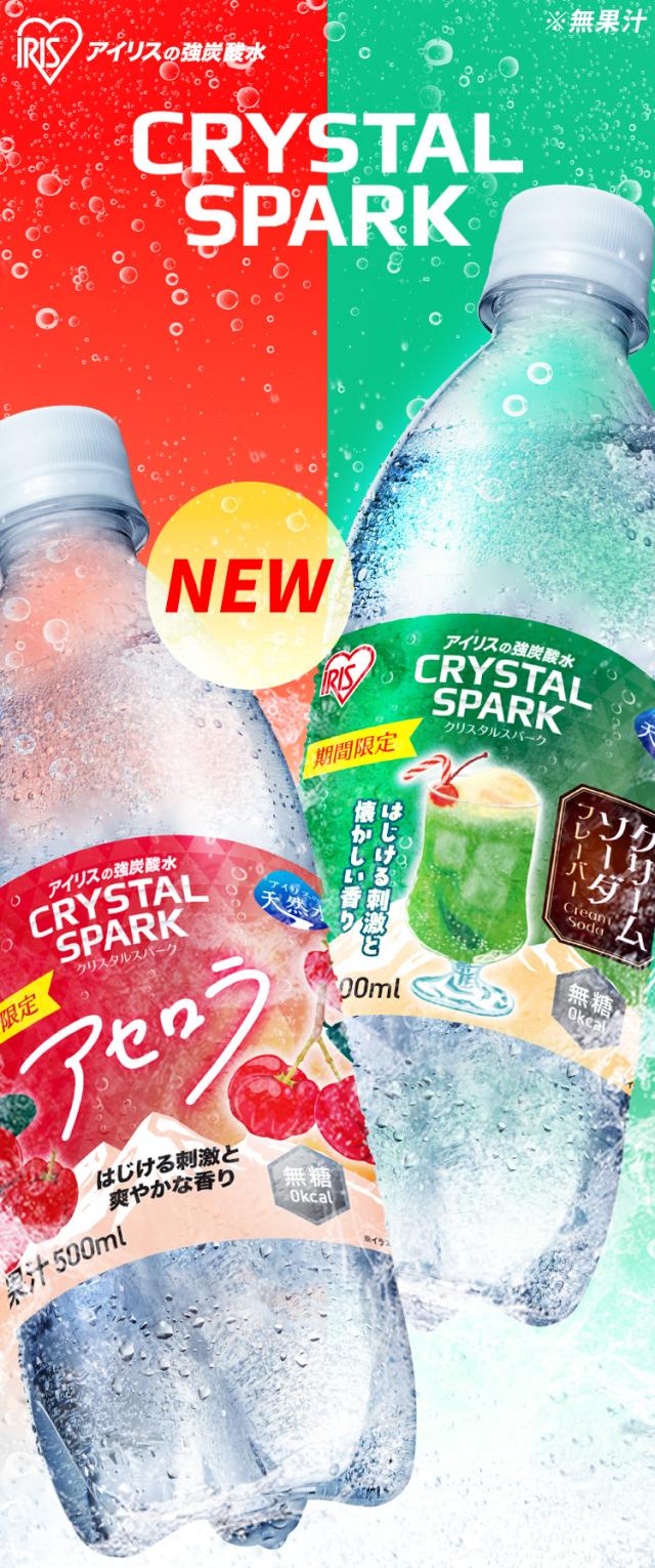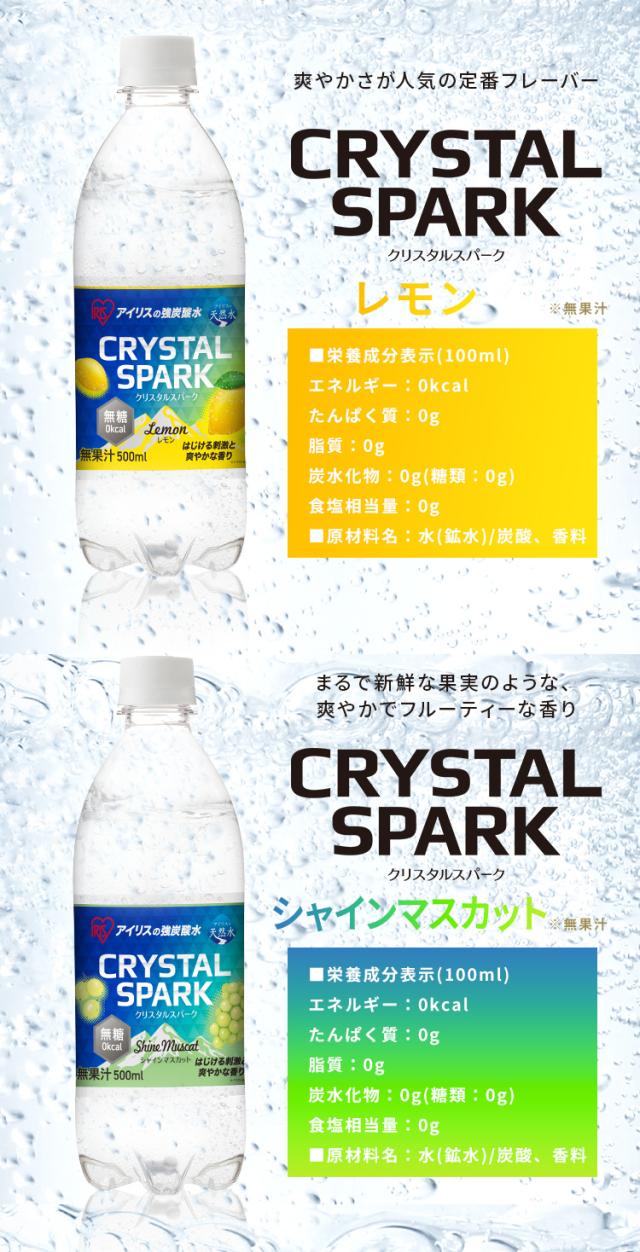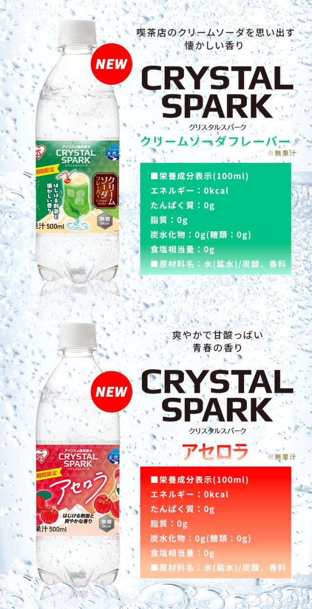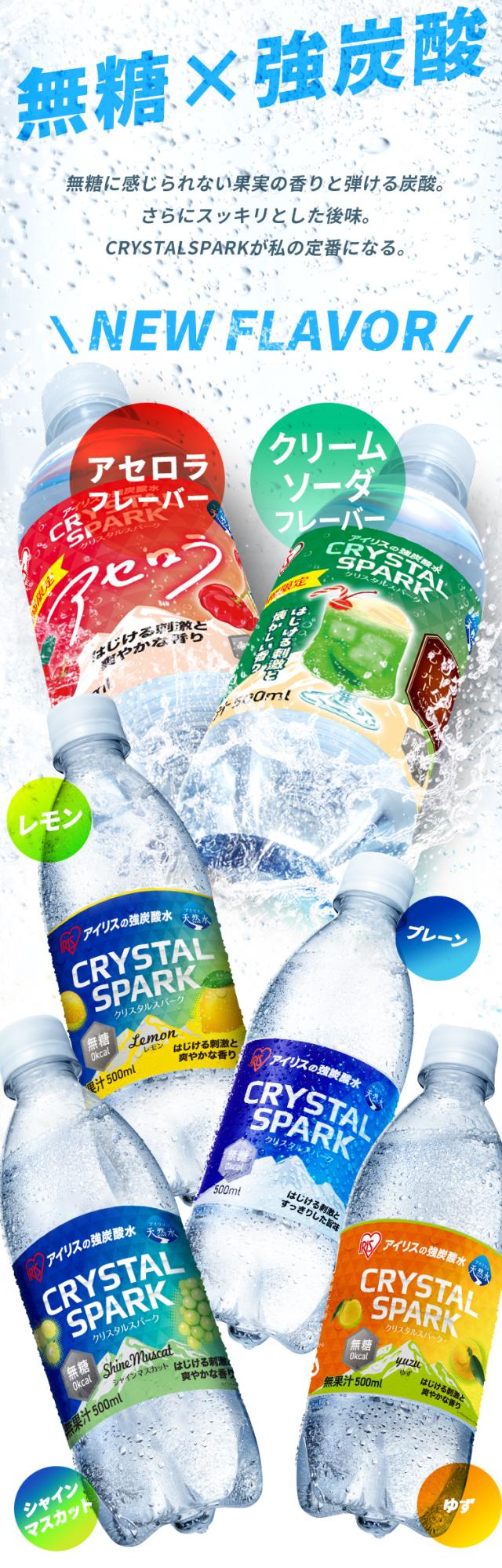 炭酸水 500ml 24本 強炭酸水 アイリスオーヤマ クリスタルスパーク 炭酸 アセロラ クリームソーダ レモン シャインマスカット ゆず ラフランス 白桃フレーバー プレーン 無糖 天然水 ペットボトル アイリスフーズ 炭酸飲料 *