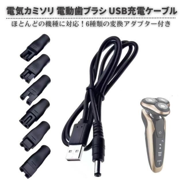 シェーバー 電気カミソリ 電動歯ブラシ 6種類の変換プラグ付き USB 充電 ケーブル 電源 アダプターキット AC電源不要 ひげそり ひげ剃り 120cm