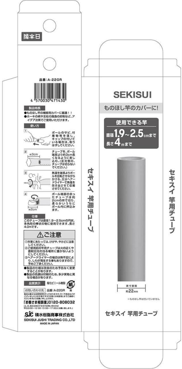 【2個セット】 積水樹脂 セキスイ 竿用チューブ 直径1.9~2.5cm用 グレー A-22GR 補修 保護 日本製 熱収縮 腐食 劣化 防止 サビ 抑制(代引不可)【送料無料】