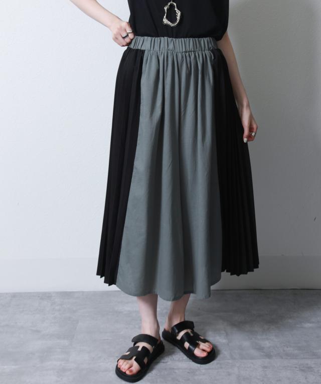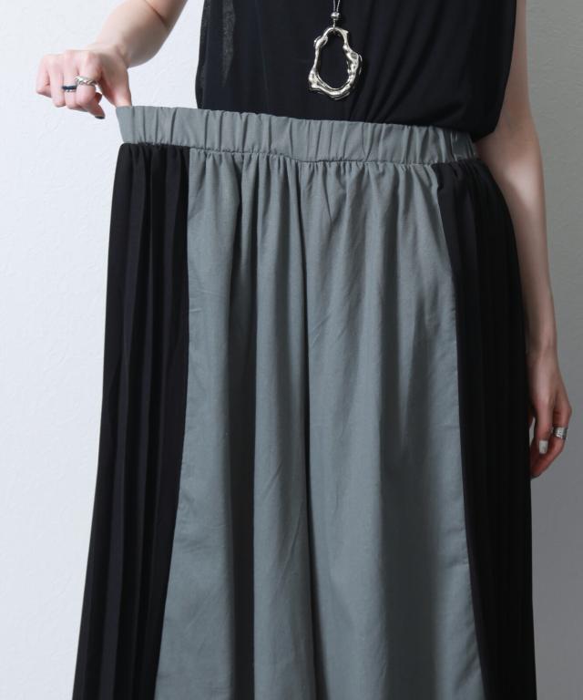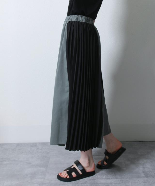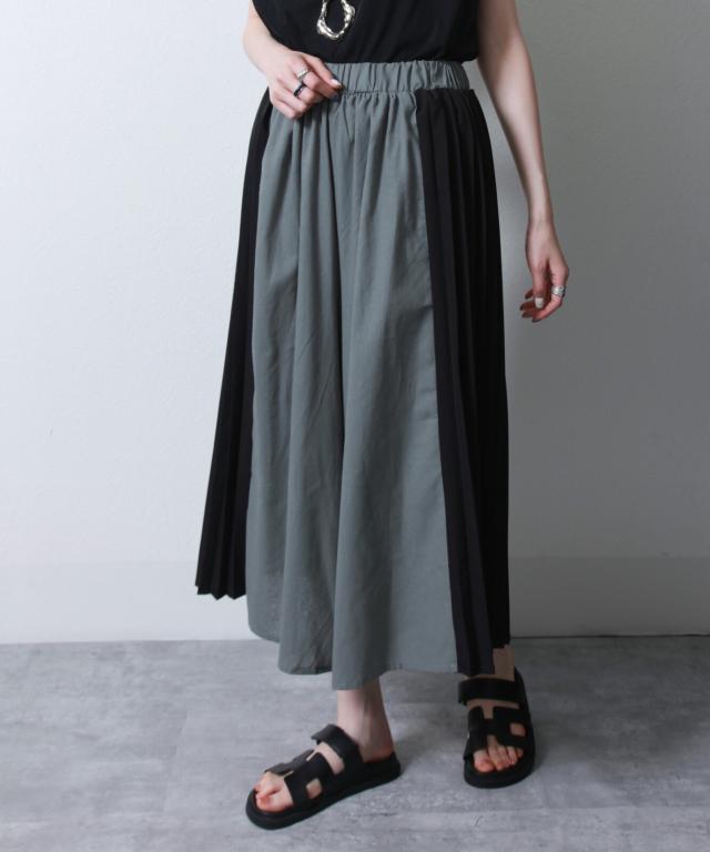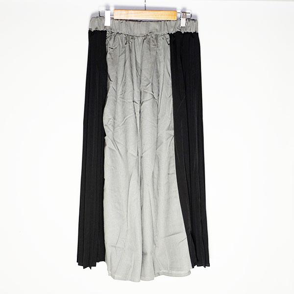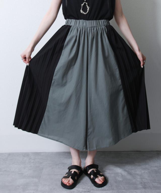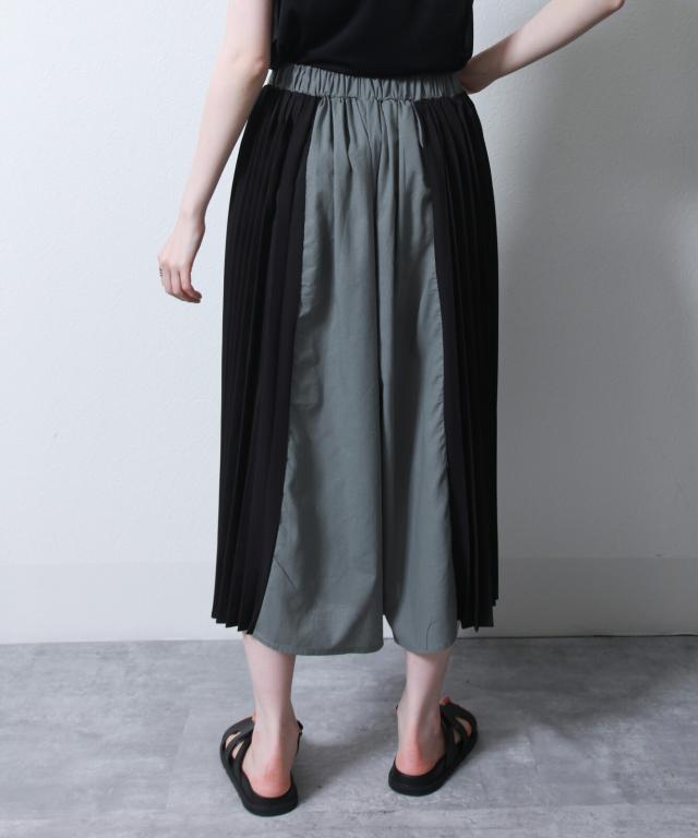 【即納】脇プリーツワイドパンツ ボトムス ガウチョ バイカラー ウエストゴム 春夏 フレアパンツ 新作パンツ