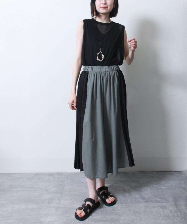 揺れるサイドプリーツが華やかで、他とは一味違うパンツを作り出してくれます。ゆったり履けて通気性もよく、これから万能な一枚です。