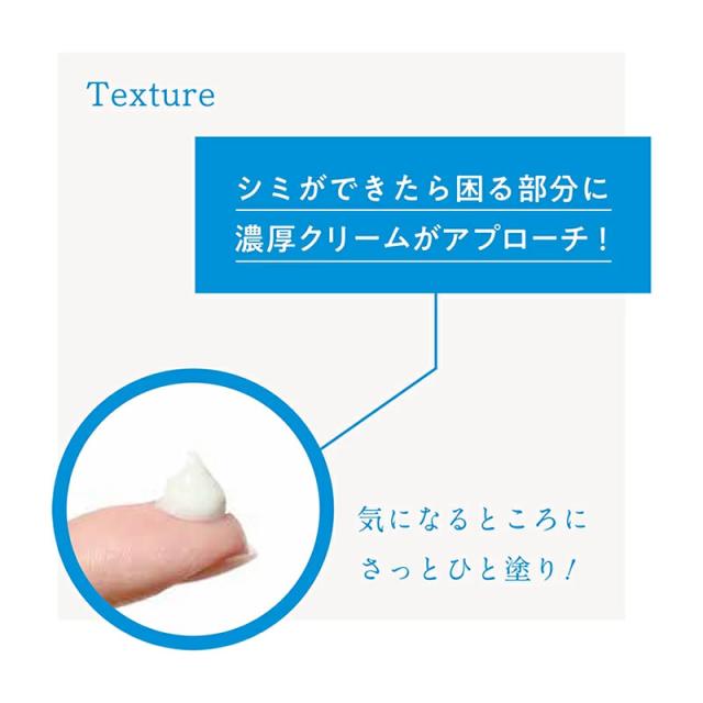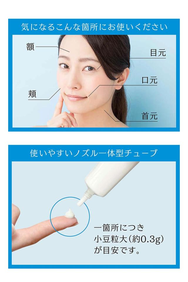洗顔後、化粧水などでお肌を整えたあと、適量を手に取り、気になる部分になじませてください。