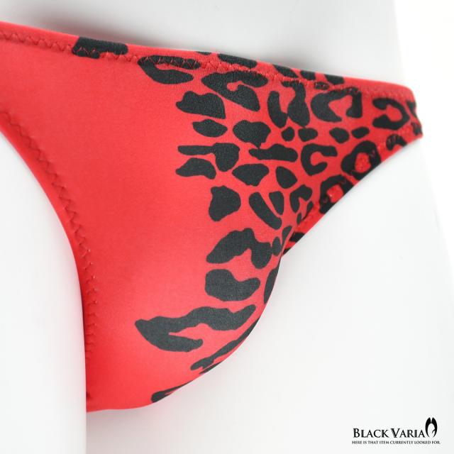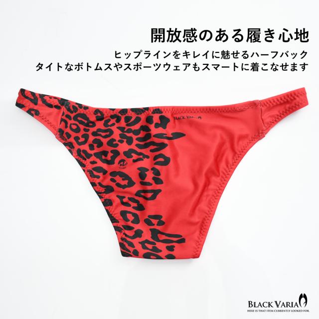 ハーフバック ヒョウ柄 レオパード 豹 アニマル柄 下着 ビキニ パンツ メンズ(レッド赤ブラック黒) tc002