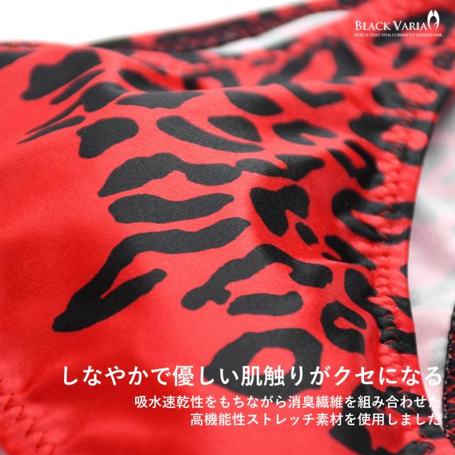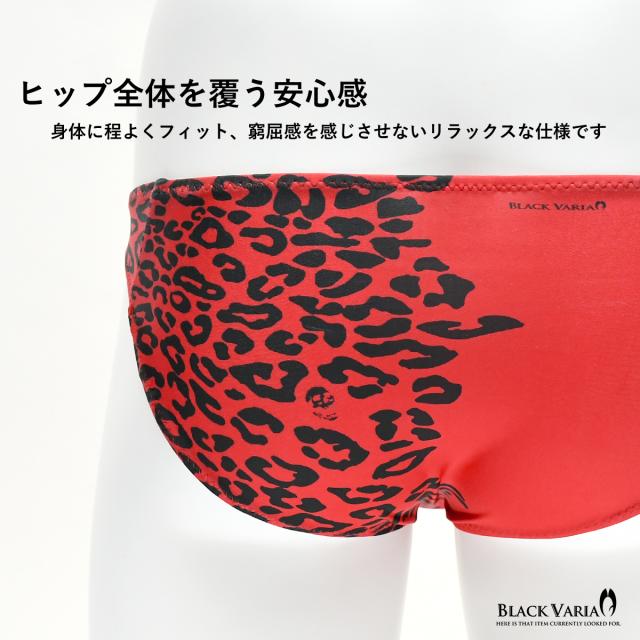 フルバック ヒョウ柄 レオパード 豹 アニマル柄 下着 ビキニ パンツ メンズ(レッド赤ブラック黒) tc003