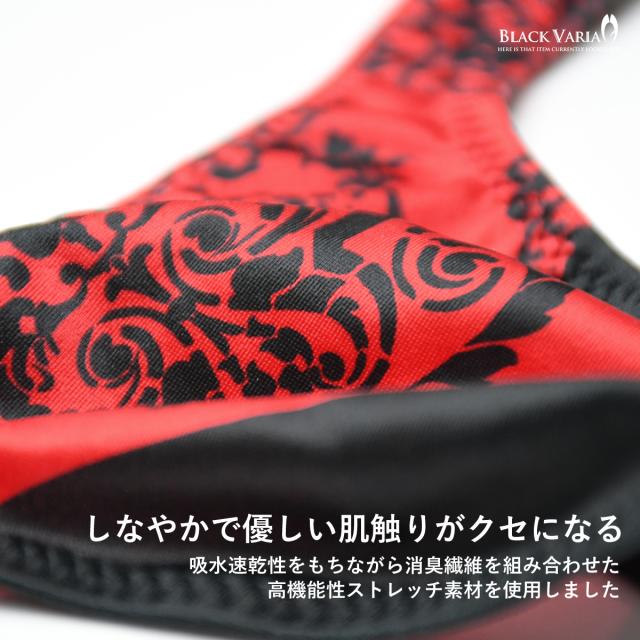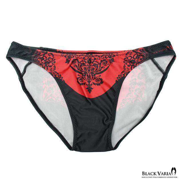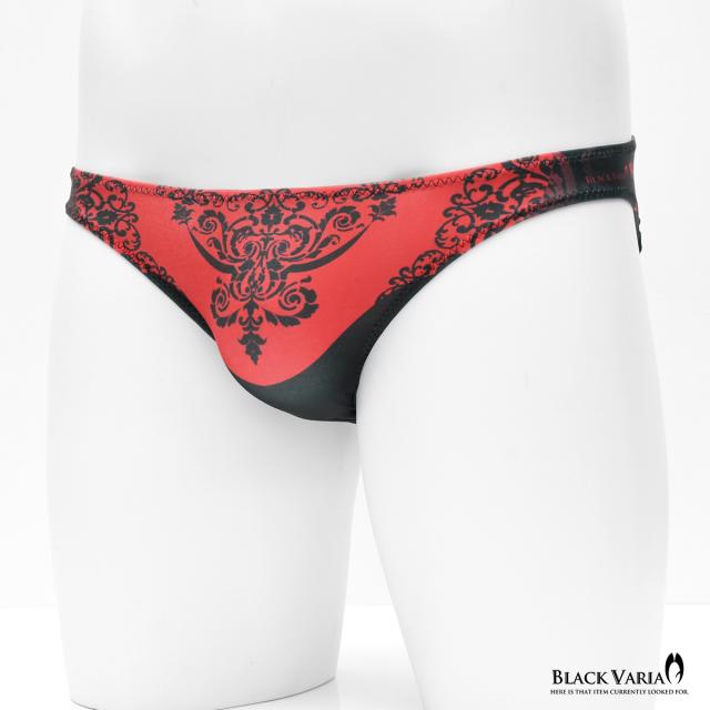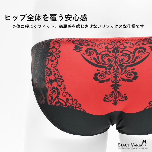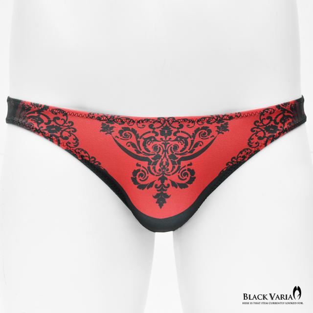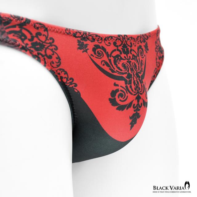 フルバック アラベスク柄 ダマスク柄 模様 植物文様 下着 ビキニ パンツ メンズ(レッド赤) tc036