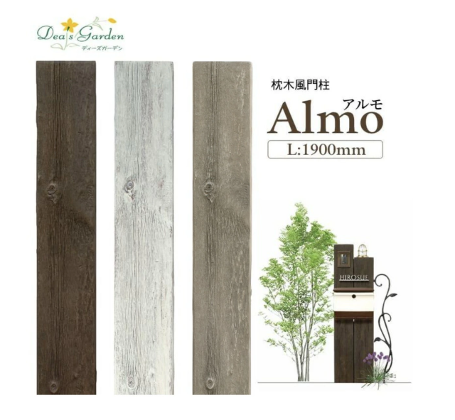 おしゃれ 機能門柱 枕木 門柱 FRP製 アルモ Almo 1900mm 木調 門柱単体 戸建 エントランス 玄関 アンティーク 古木 枯木 ディーズガーデン