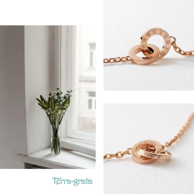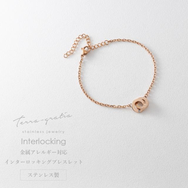 ブレスレット レディース ステンレス 刻印 ダイヤモンド ローマ数字 インターロッキング インフィニティ 無限 サージカルステンレス 金属アレルギー つけっぱなし テラグラティア Terra-gratia ランキング ギフト プレゼント 誕生日 記念日 ホワイトデー 母の日 クリスマス【ローズゴールドカラー】