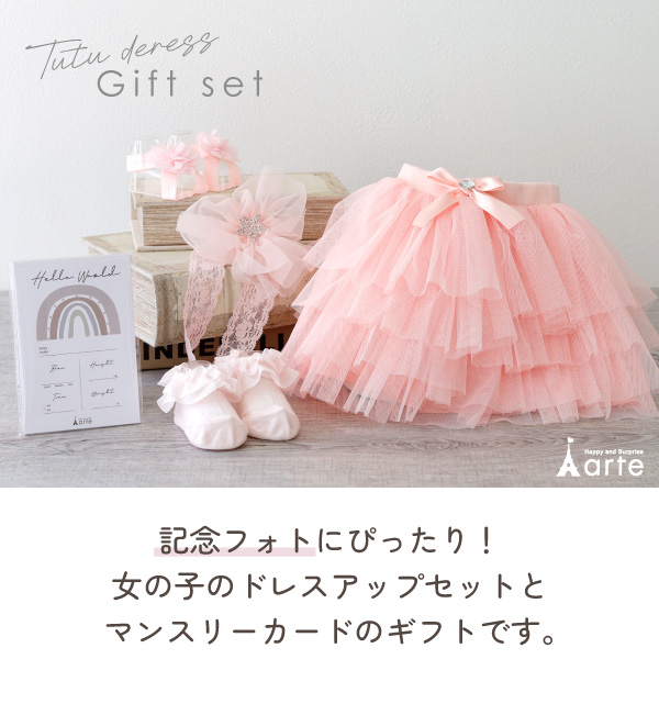 出産祝い 女の子 赤ちゃん ドレスアップセット チュチュ ヘアバンド ベビーソックス マンスリーカード おむつ ギフト