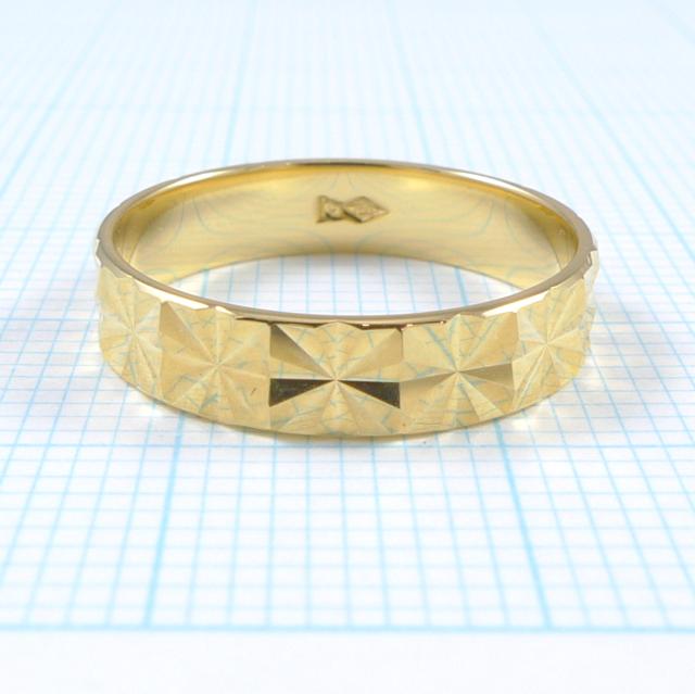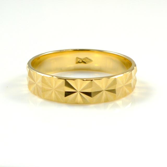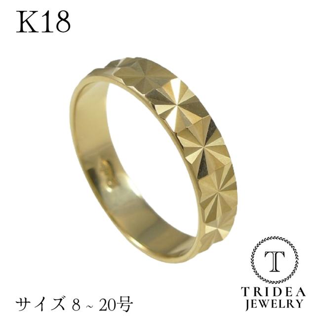 K18 カットリング イエローゴールド 幅3.9mm 8号から20号 男女兼用 平打 造幣局検定 メンズ レディース 18金 ペアリング 18k