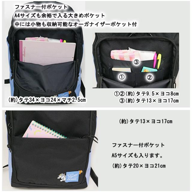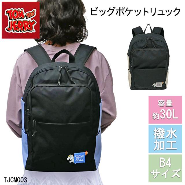 トムとジェリー リュック ディパック バックパック PCポケット タブレット セキュリティポケット 通学 通勤 旅行 容量30L 撥水 Dカン 1泊 修学旅行 自然学校 野外活動 合宿 クラブ 大容量 ロゴ 小学生 中学生 女 男 キャラクター 誕生日 プレゼント 入学 卒業 TJCM003