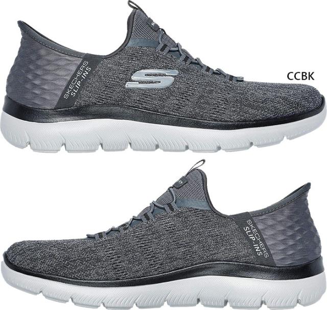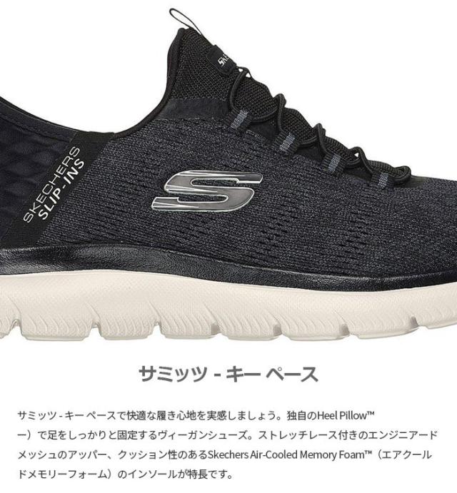 4E ワイド 幅広 スケッチャーズ メンズ サミッツ キー ペース スリップインズ スニーカー スリッポン ハンズフリーシューズ 通勤 ウォーキング ブラック 黒 グレー 灰色 送料無料 SKECHERS 232469W