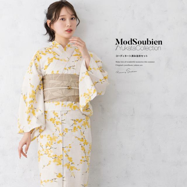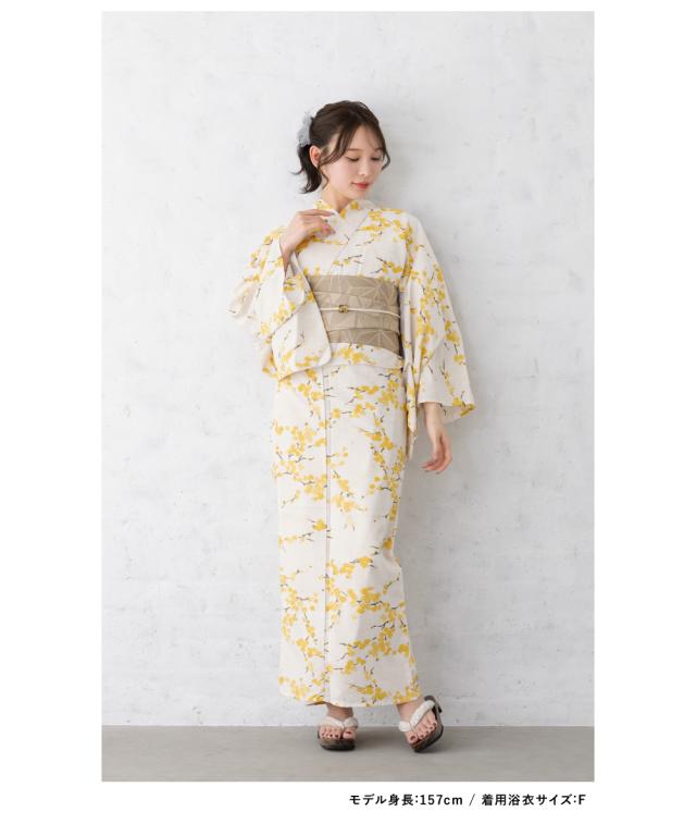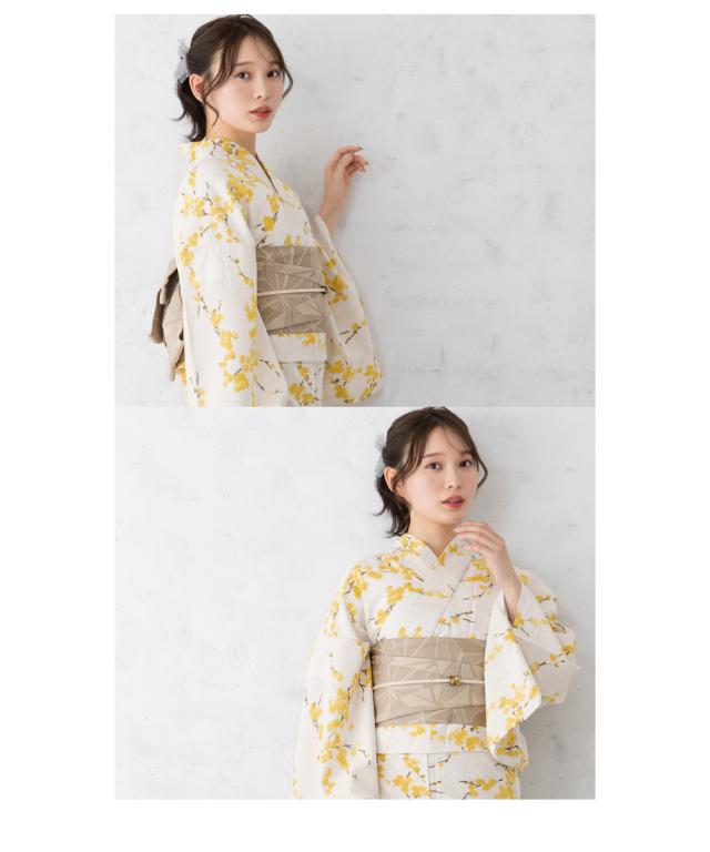 浴衣 セット レディース 浴衣セット 半幅帯 2026 大人 3点セット 白 黄色 イエロー ベージュ 花 帯 夏 Sサイズ フリーサイズ 送料無料
