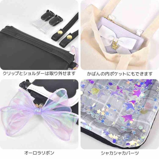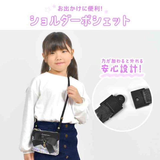 移動ポケット 女の子 小学生 ポシェットポケット ポケットポーチ キッズ ショルダー ポシェット クリップ マルチポケット ショルダー付き ハンカチポケット 子供 かわいい おしゃれ キラキラ オーロラ ブラック パープル 小学校 低学年 高学年 女子 入園 入学 準備 通園 通学