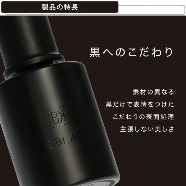 マットブラックのボトルにブラックシルク印刷でロゴを表記し、角度が変わった際にキラリとロゴが現れるデザイン。