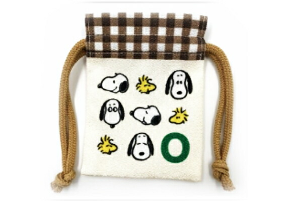 【スヌーピー】【SNOOPY】イニシャル豆巾着【O】【ピーナッツ】【ウッドストック】【すぬーぴー】【ポーチ】【ケース】【小物入れ】【収納】【袋】【きんちゃく】【子供】【キッズ