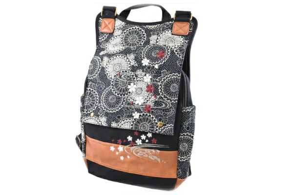 オオB47-HGR03 【Ripple】【リップル】帆布×合皮刺繍リュック【菊輪】【カバン】【かばん】【鞄】【バックパック】【リュック】【収納】【お出かけ】【アウトドア】【雑貨】【グッズ】【かわいい】