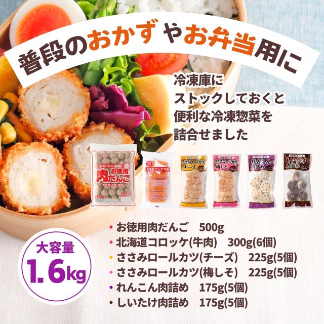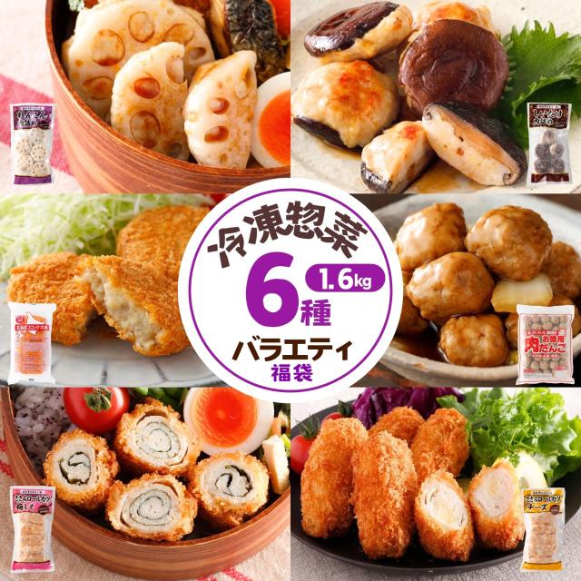 肉 冷凍 惣菜 福袋 グルメ 6種 セット 1.6kg 肉だんご コロッケ 牛肉 肉詰め れんこん しいたけ 鶏肉 チキンロールカツ 梅しそ チーズ 冷凍食品 送料無料 大容量 業務用 惣菜 詰合せ 弁当 おかず パーティー 食品 ギフト 揚げるだけ クリスマス 歳暮 お歳暮 のし のし対応