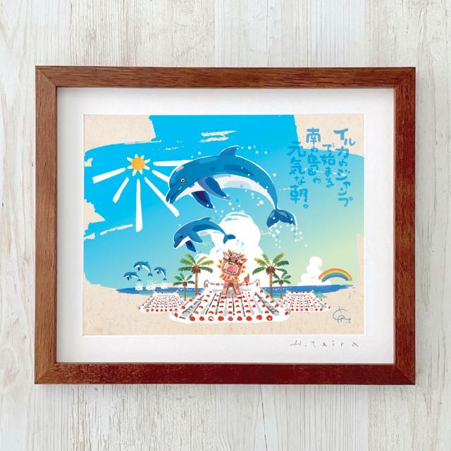 グラフィックアート 壁掛け おしゃれ 絵画 額付き 新築祝い 誕生日 プレゼント 島の彩 No.018 / イルカのジャンプ Sサイズ