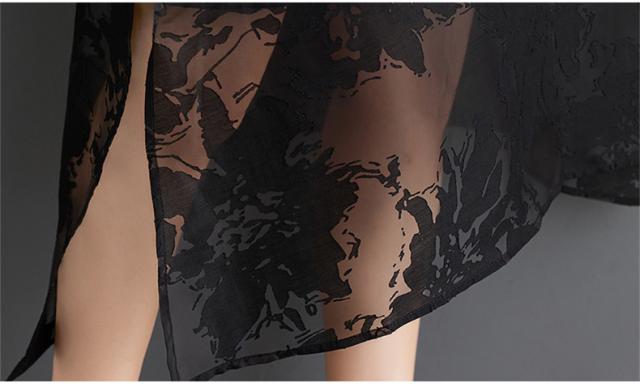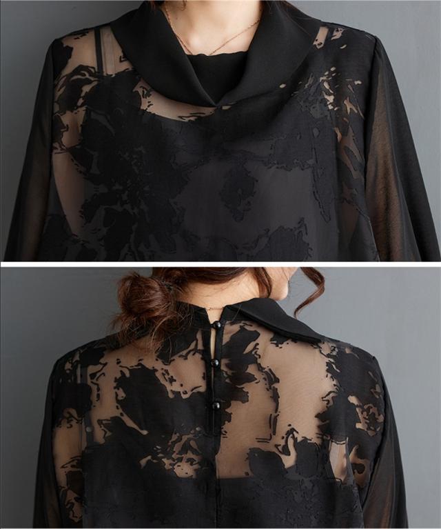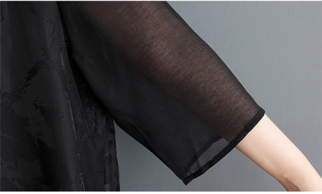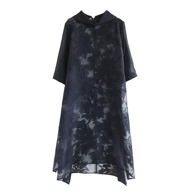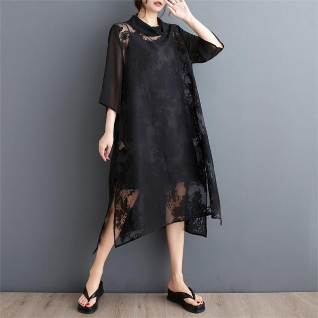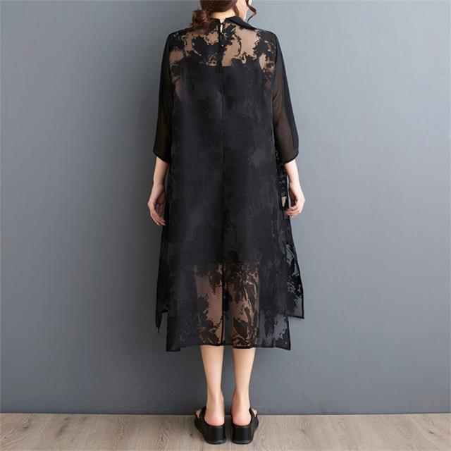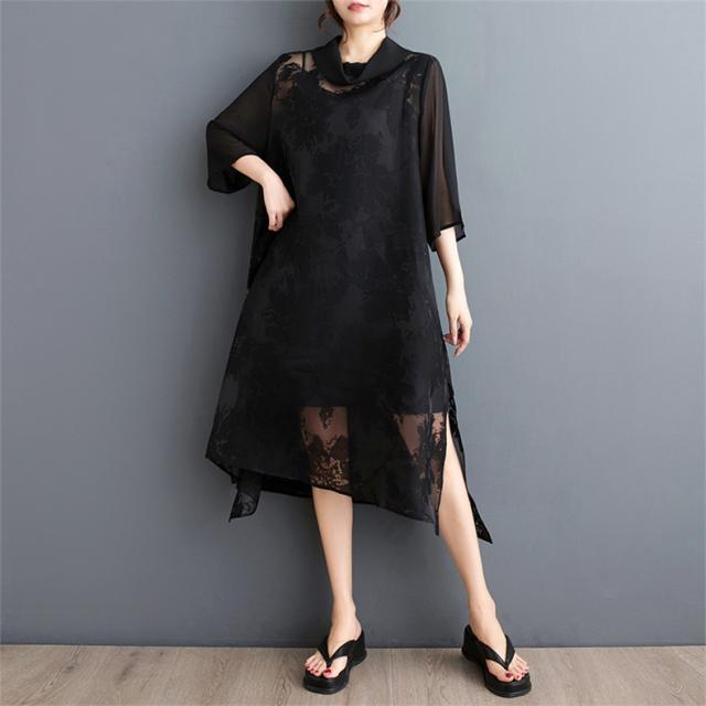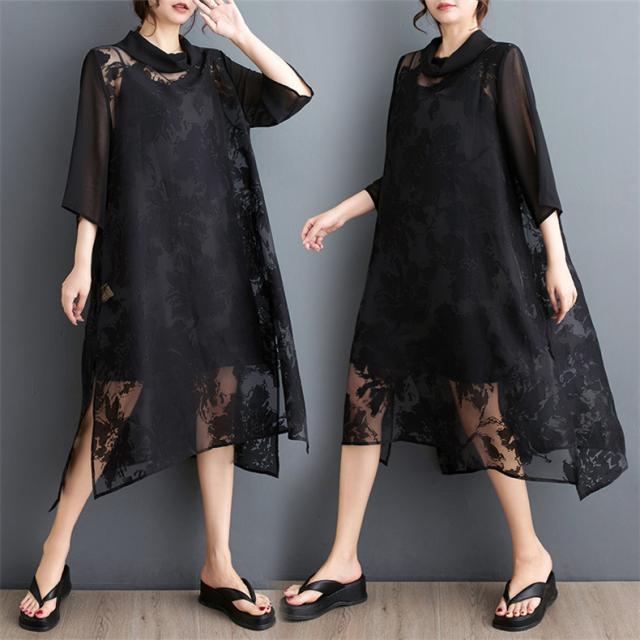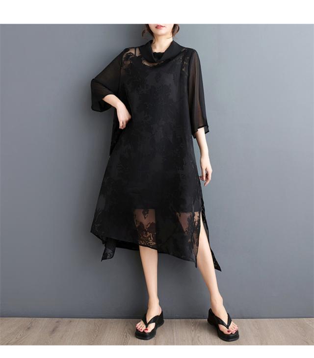 夏ワンピース レディース ロングワンピース 七分袖 メッシュ ゆったり トレンド感UP パーティーやお食事会 あらゆるシーンに スッキリとした華奢見え