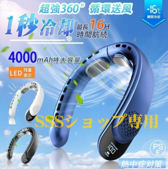 首掛け扇風機 ネッククーラー 2つ冷却プレート付 半導体冷却空調 扇風機 羽なし 小型 軽量 4000mAh大容量 首かけ 羽なし 静音 携帯 冷却