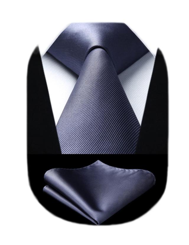 HISDERN 結婚式 グレー ネクタイ チーフ セット メンズ 無地 シルク フォーマル 礼服用 入学式 卒業式 プレゼント TL301A8