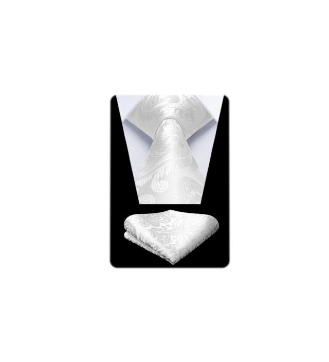 HISDERN 結婚式 シルバー ネクタイ チーフ セット メンズ ペイズリー柄 就活 二次会 入学式 卒業式 ビジネス プレゼント高級