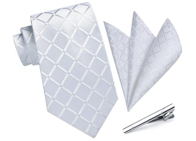 HISDERN ヒスデン 白 ネクタイ 結婚式 メンズ フォーマル ネクタイ チーフ 3点セット チェック柄 プレゼント 高級 ボックス付き ビ