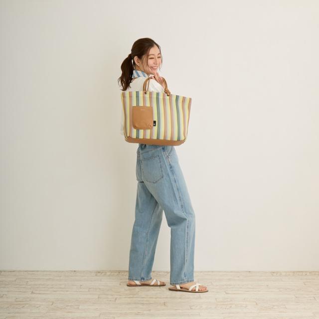 | 商品説明 | ・フワフワした触り心地、暑い季節にもベタ付きにくい! ・生地やクリームが重なり合い、網目模様が特徴のウェファースから名付けた「ウエッファ」(ウエッファはウエファースの単数形です。) ・持ってるだけで映える! ・フェイクレザーのかわいいハンドルとルーポケットがアクセント。 ・オモテとウラと使い分け。 ・ルーポケット面を気分やファッションに合わせてチェンジ。持って楽しいデザインです。 ・カラフルなストライプ柄。柄の出かたはいろいろ。ひとつひとつ違った表情をお楽しみください。 ・A4サイズのファイルが収納できるサイズ。 ・ボトル、ランチボックス、ポーチ、傘などもらくらく収納。フェイクレザー底で、しっかり安定するつくり。 ・ドットボタン開閉で、中身を隠せて安心です。 ・サラリとした手触りは暑い季節にもベタつかず、快適。いつでも清潔に。汗ばむ季節のデイリーなご使用にオススメ! ・手洗い可能(手おし洗い推奨)で、衛生的に安心してご利用いただけます。 ・季節を問わず大活躍です。 |