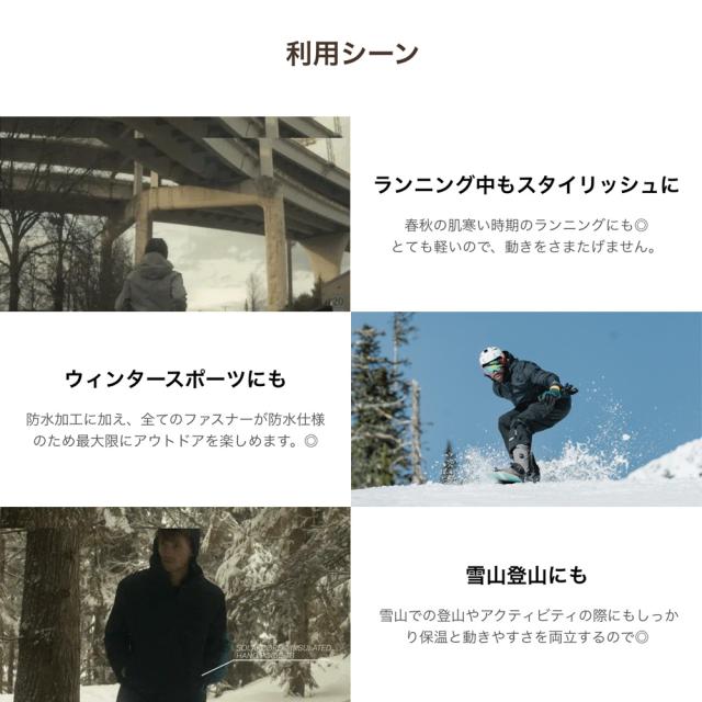 雪山での登山やアクティビティの際にもしっかり保温と動きやすさを両立するので◎