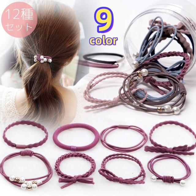 ヘアゴム 髪ゴム 12個セット レディース 女性 女の子 ヘアアクセサリー デザイン豊富 パール調 蝶 結び目 2重 3重 髪飾