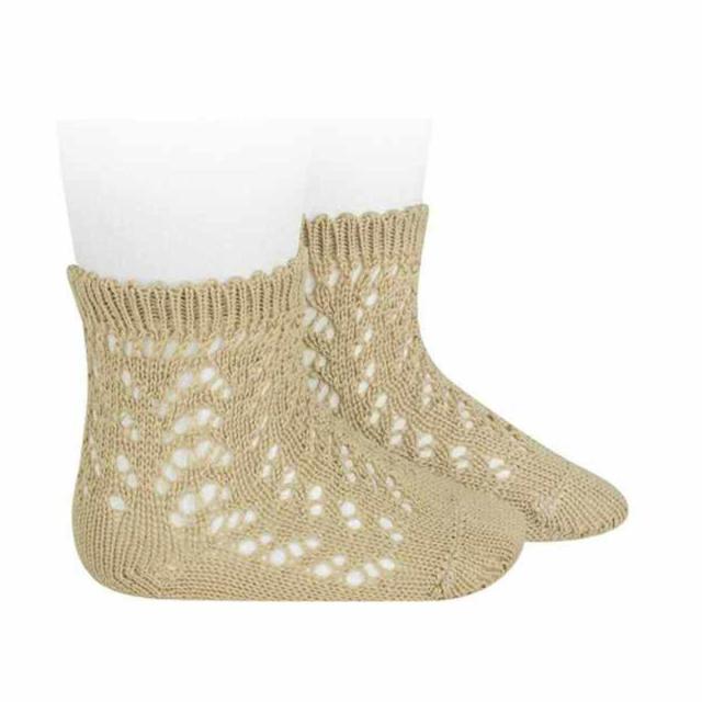 ●透かし編みのデザインが全面に施されたショートソックスです。