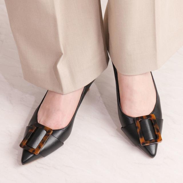 【サステナブル】バックル付きポインテッドトゥパンプス