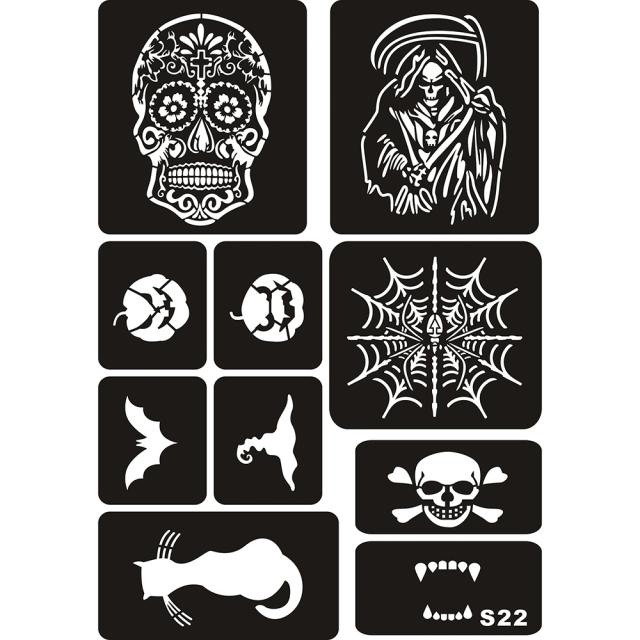 [10枚セット スカル 髑髏 ドクロ がい骨 死神 クロス 十字架 ジャックランタン カボチャ オバケ コウモリ 蜘蛛 ネコ 猫 キバ 牙 イベント ハロウィン フェス 祭 海 浜 いれずみ ]