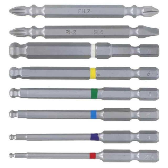 セット内容:ボールポイント六角ビット2.5mm/3mm/4mm/5mm/6mm/8mm/+No.2×-6/+No.2