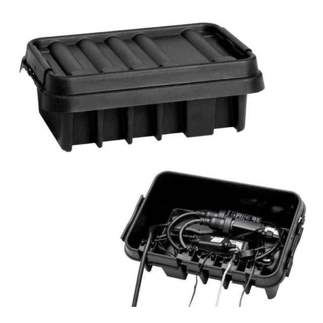 水やホコリからコードを守るコンセントボックス。イルミネーションや屋外用ライトのコード収納に。