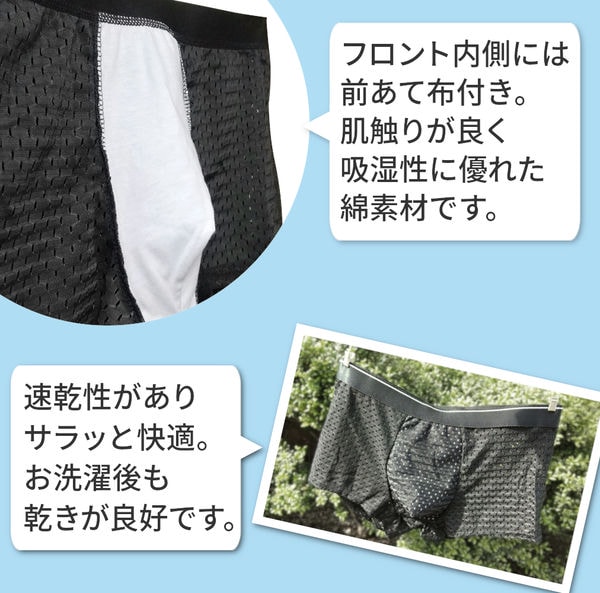 総メッシュで通気性抜群の男性用ボクサーパンツです。